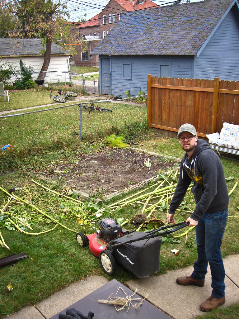 Scott thought running the mower over everything would help speed things up by chopping things faster.