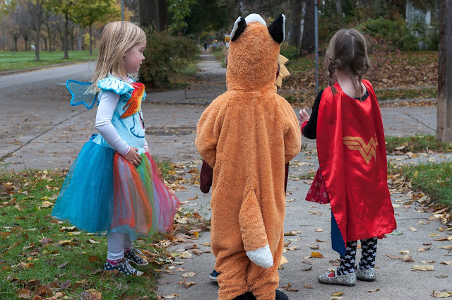 I asked Meadow what she wanted to be for Halloween last August. She wanted to be a fairy again. I eventually convinced her to be a butterfly. Then two days before the party she decided on being Wonder Woman.