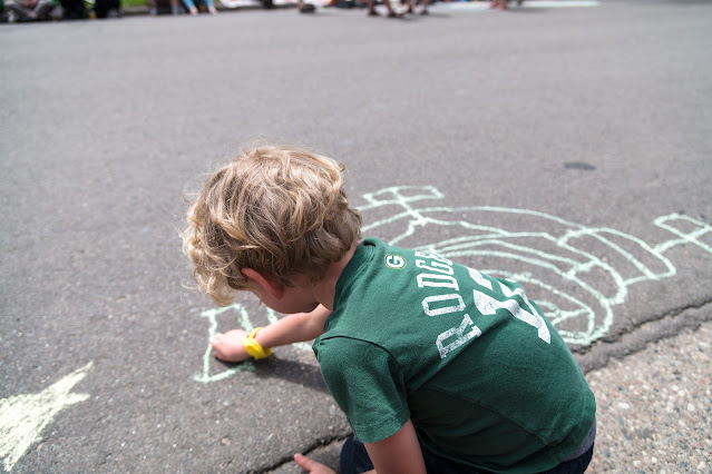 The family next to us shared their chalk with the kids. Theo has really been into creating things symmetrically.